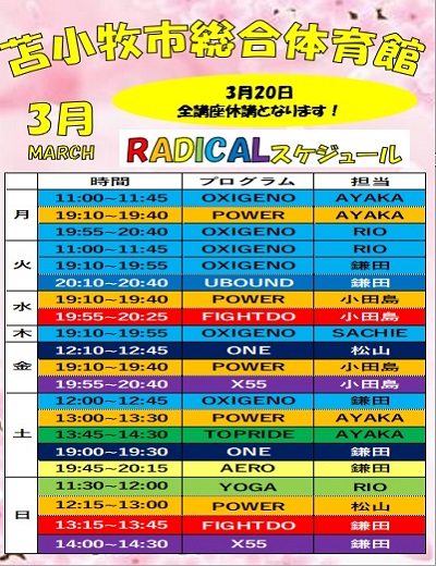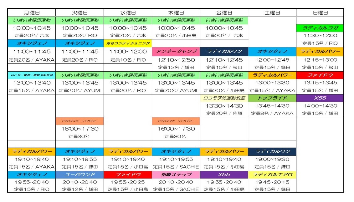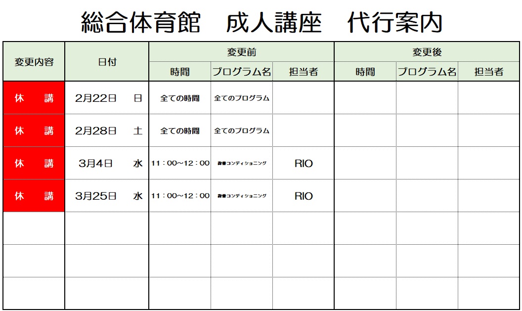 トレーニング室のみ毎月最終水曜日(メンテナンスのため)