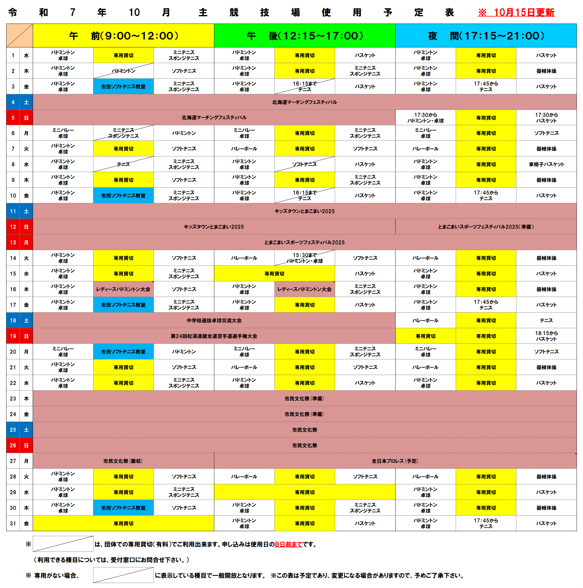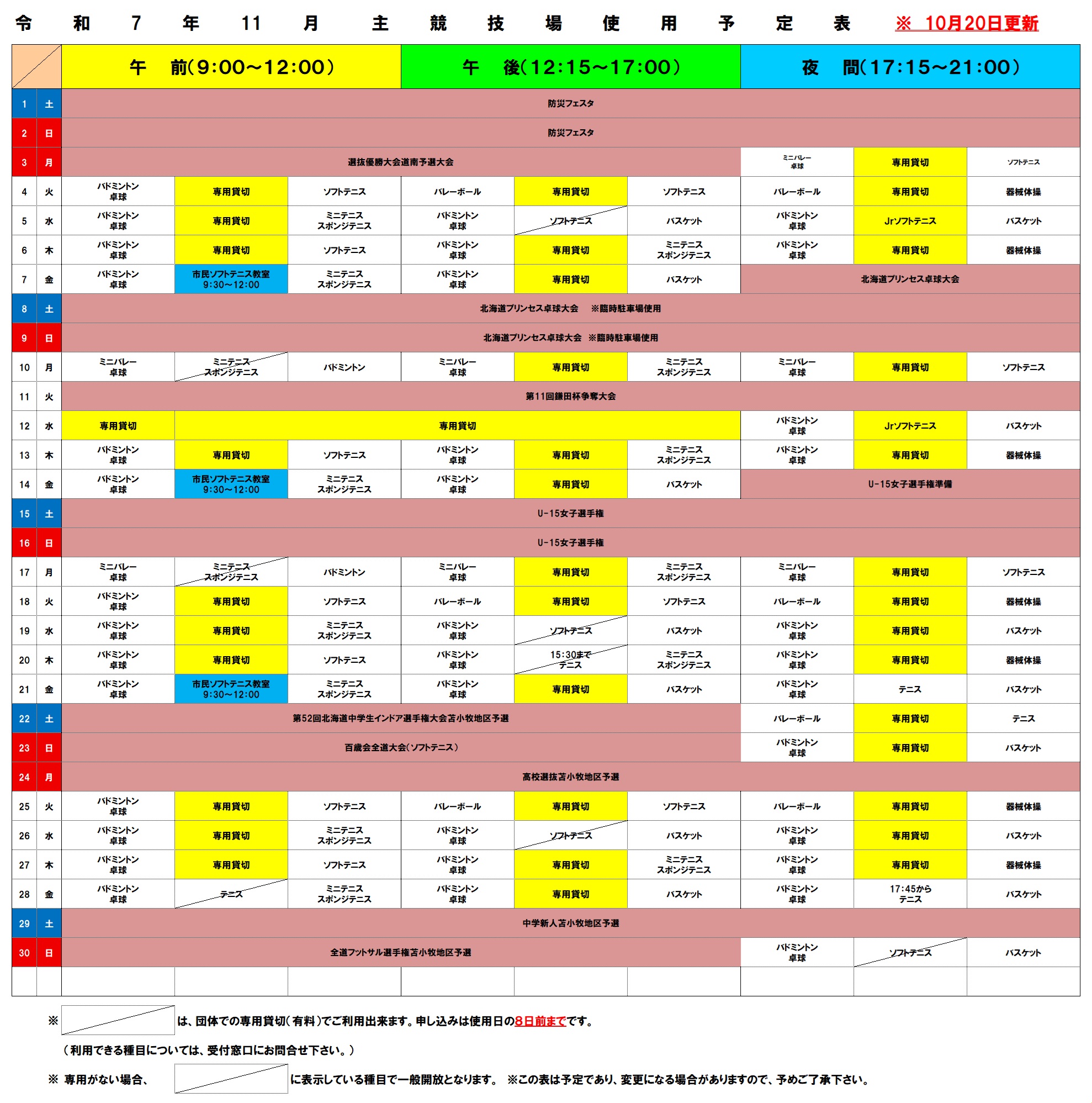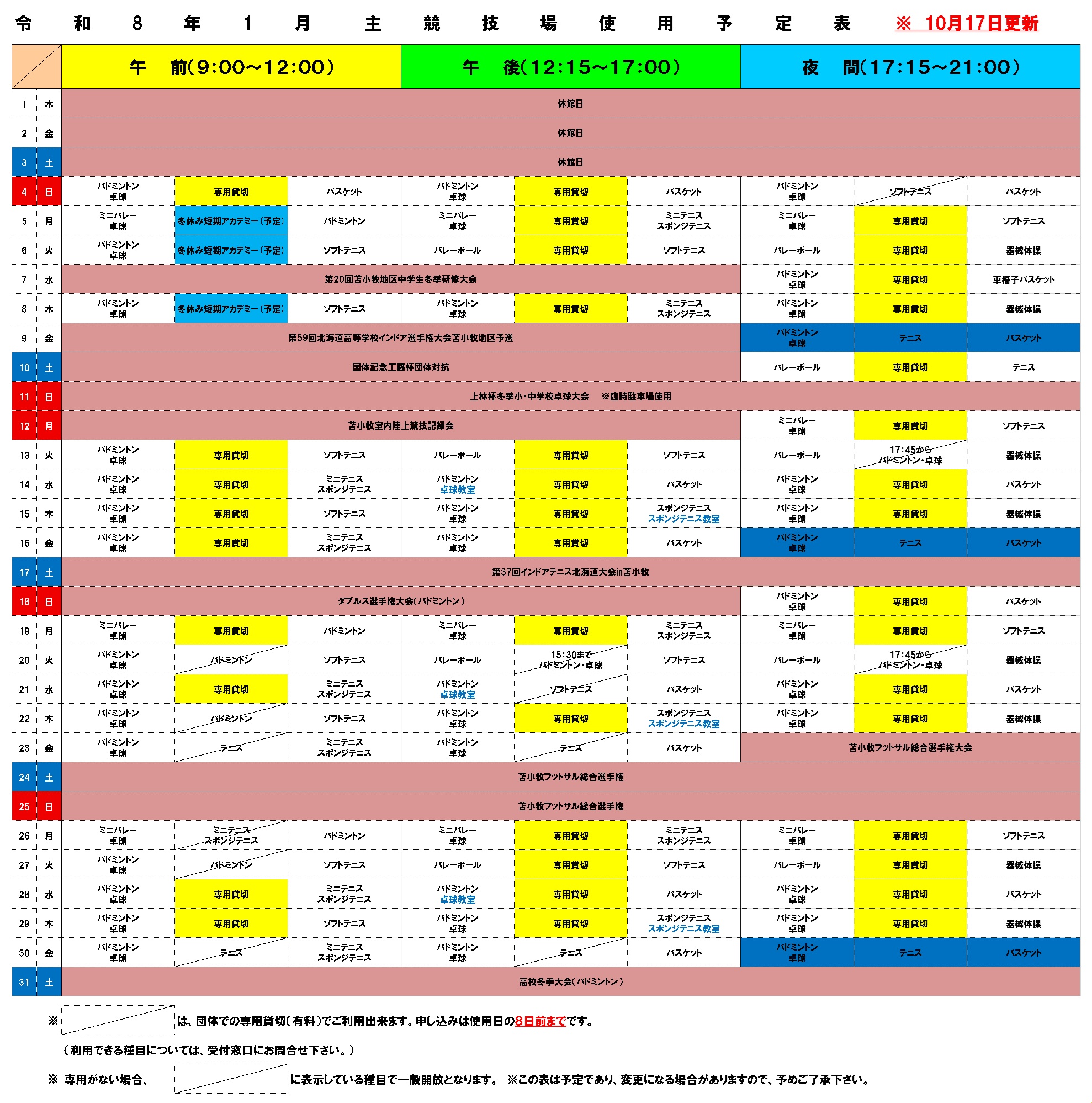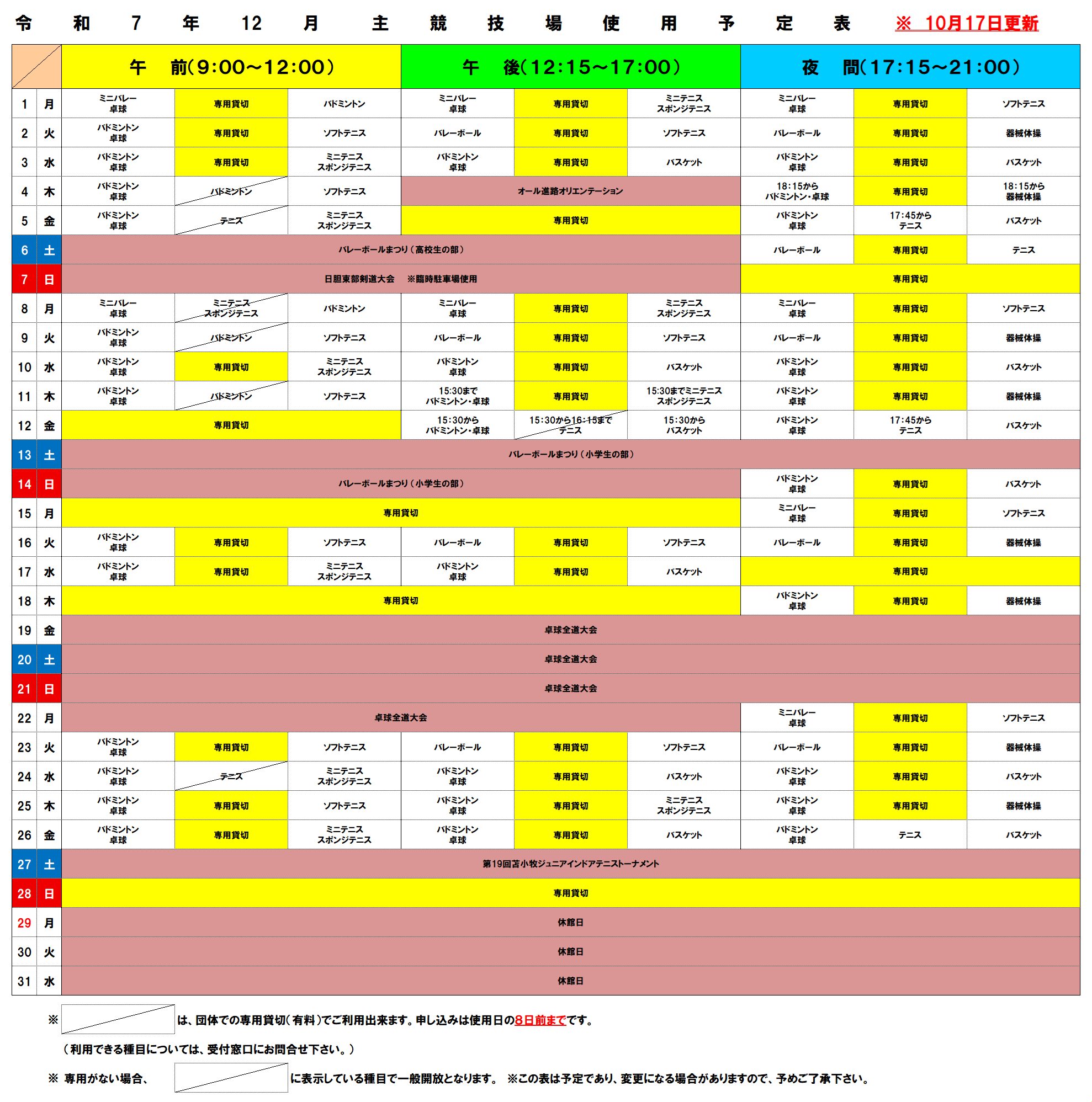 体育館予定表