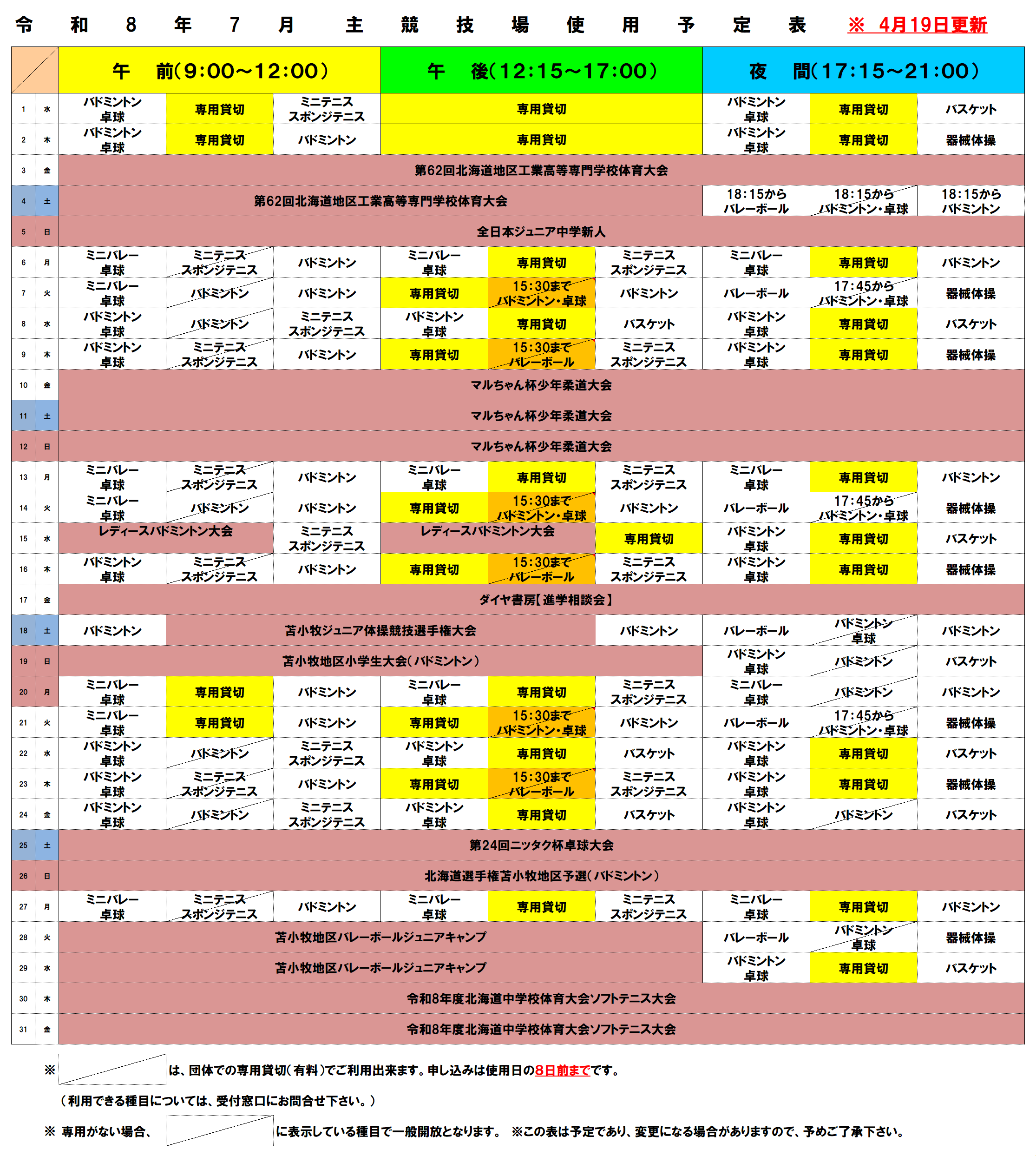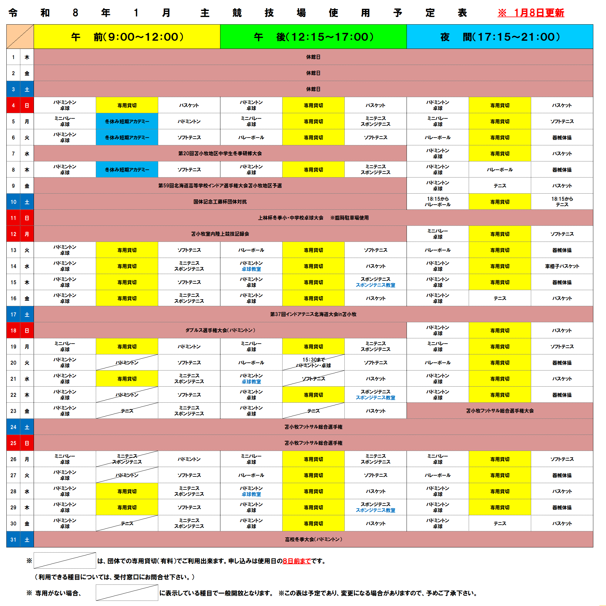 トレーニング室のみ毎月最終水曜日(メンテナンスのため)