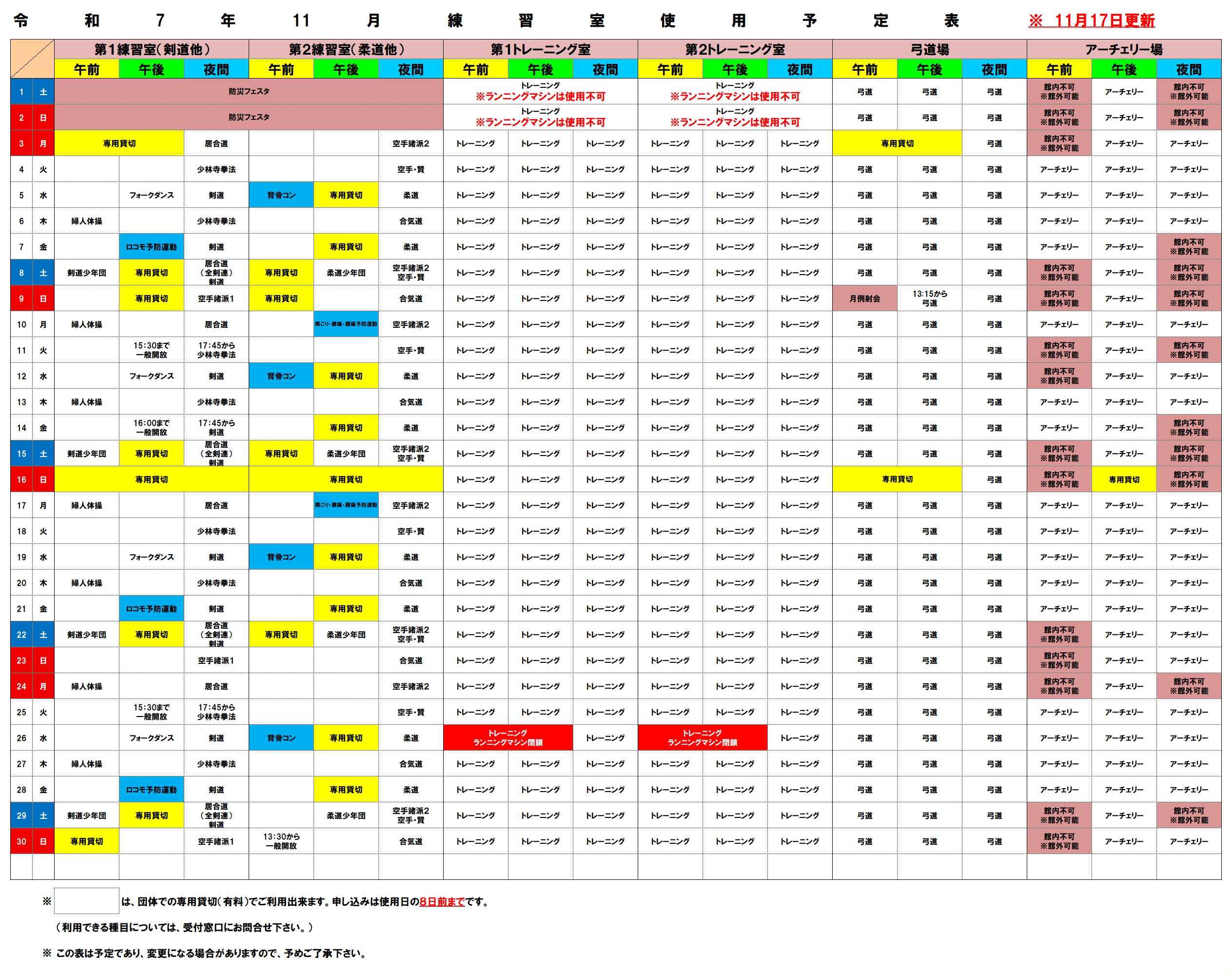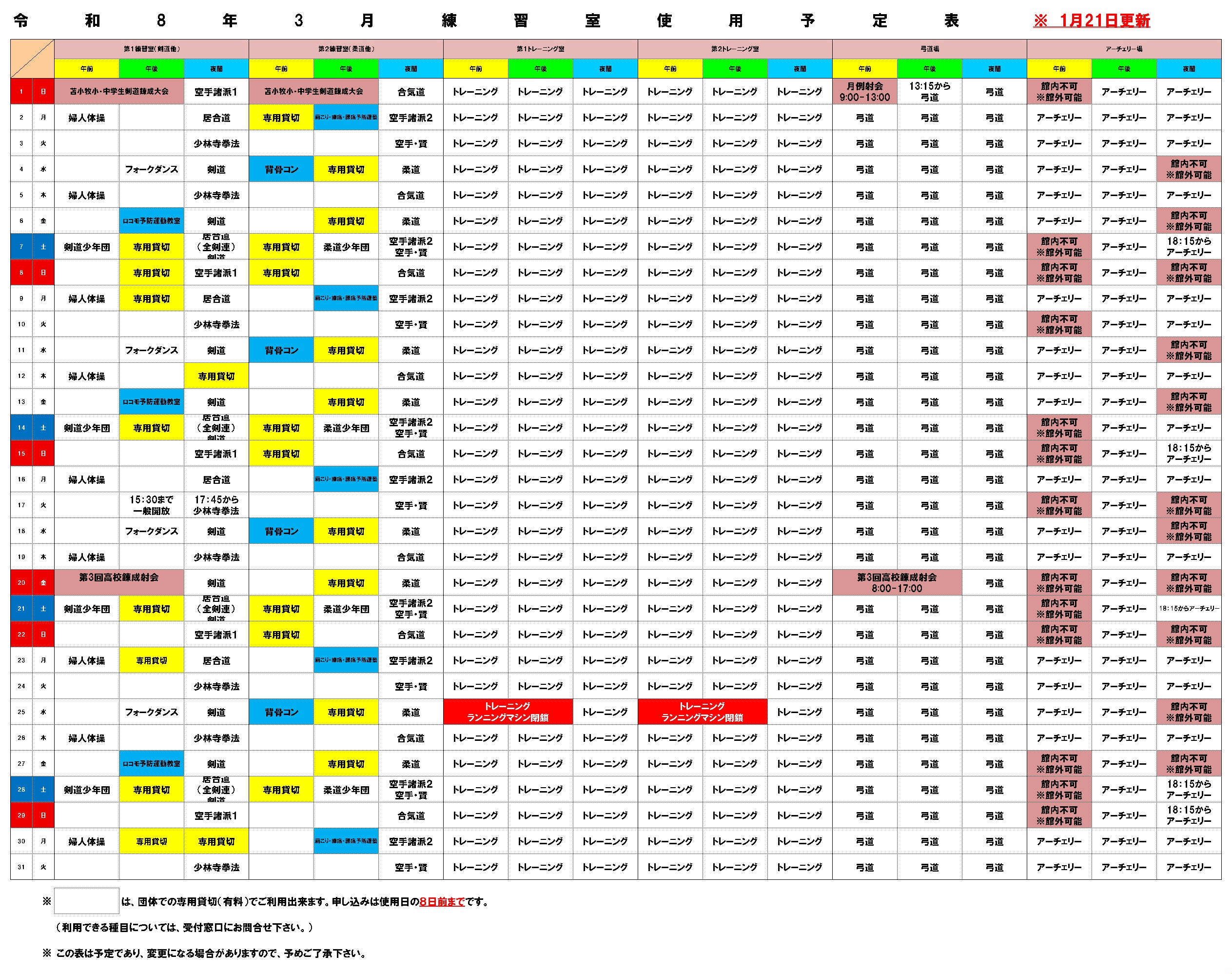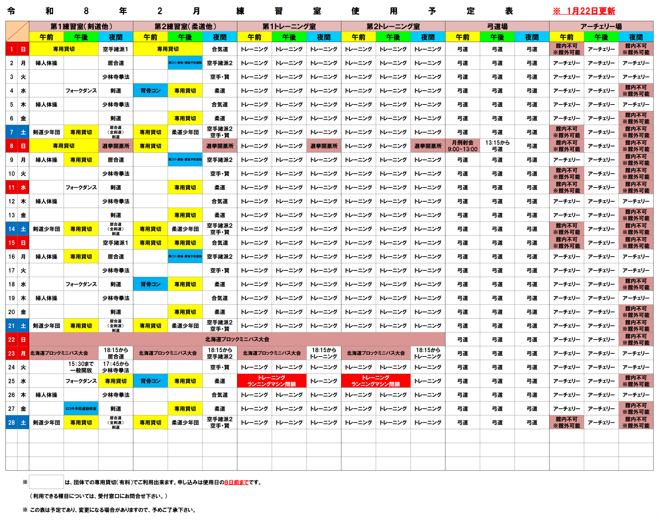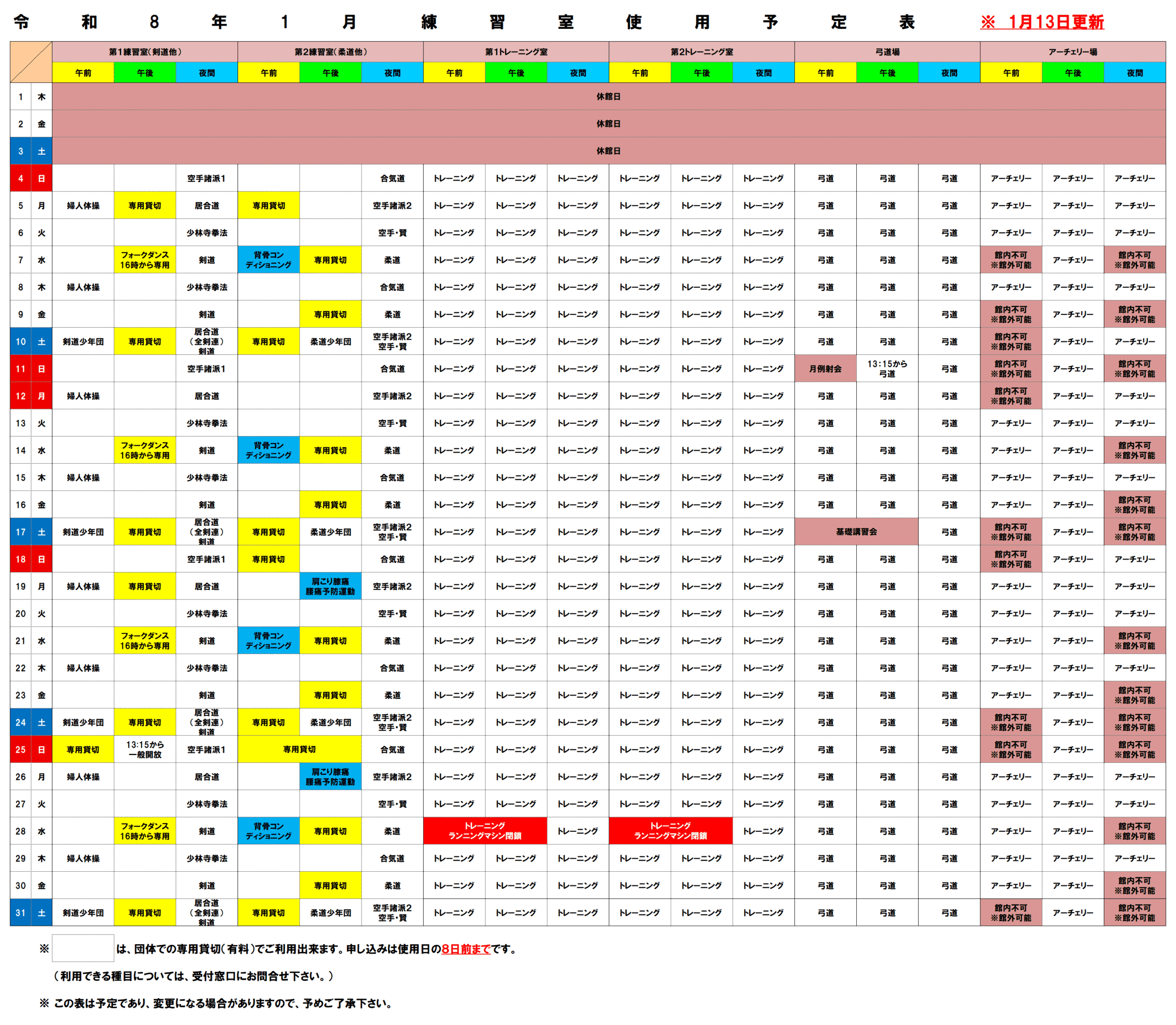 トレーニング室のみ毎月最終水曜日(メンテナンスのため)